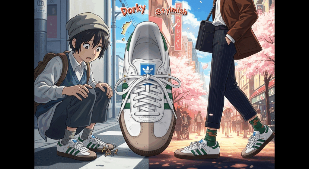 アディダスのサンバが「ダサい」と言われるのは、流行りすぎていることや一部の古い着こなしが原因です。