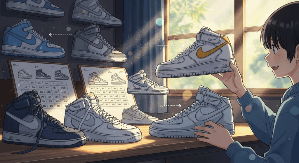 - 定番の「’07」モデルやLOWカットは、この基本の選び方が最も当てはまります。