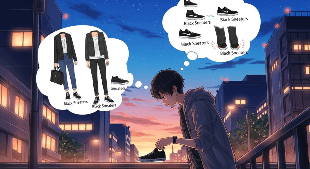 この記事では、黒スニーカーが野暮ったく見えるNG例から、おしゃれに見せるための選び方や着こなし術まで分かりやすく紹介します。