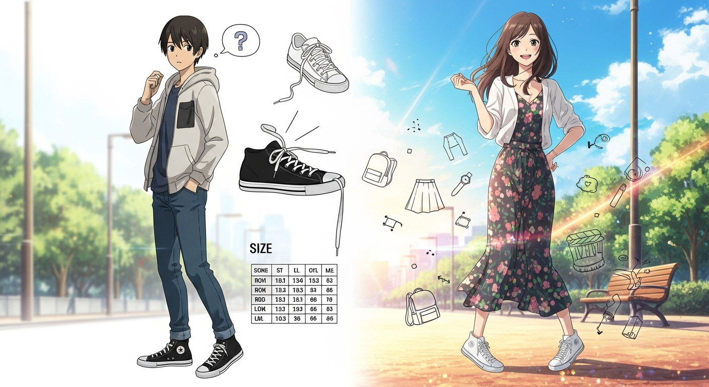 紐なしコンバースで「買ってから後悔…」とならないためには、サイズ選びが何よりも重要です。