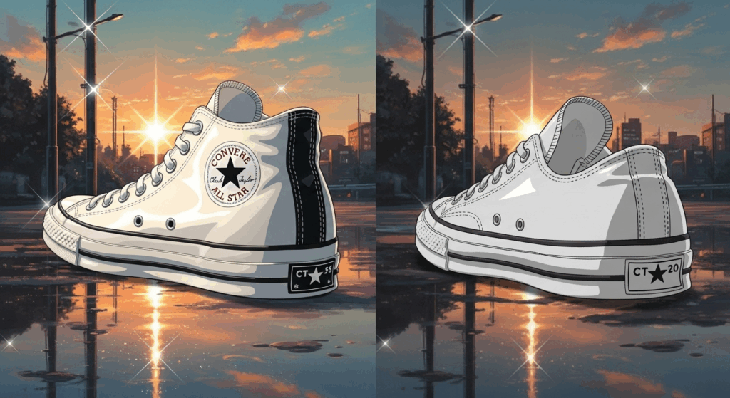 細かなディテールだけでなく、スニーカー全体の「シルエット(形)」も、CT70を見分ける上で非常に重要な要素です。