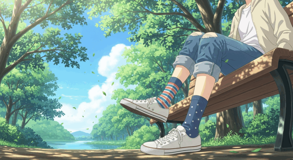 - 柄物ソックス:ボーダーやドットなど、シンプルな服装の日のアクセントになります。ただし、柄の面積が大きくなりすぎないように注意が必要です。