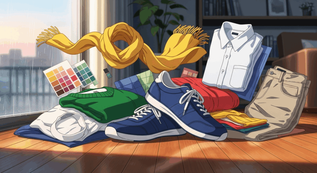 - イエローやマスタード:遊び心のあるカジュアルスタイルに