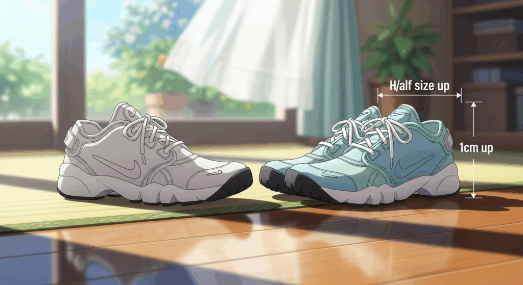 もし、近くに試着できるお店がない場合は、思い切って1.5cmや2cmアップのサイズを選ぶのも一つの手です。