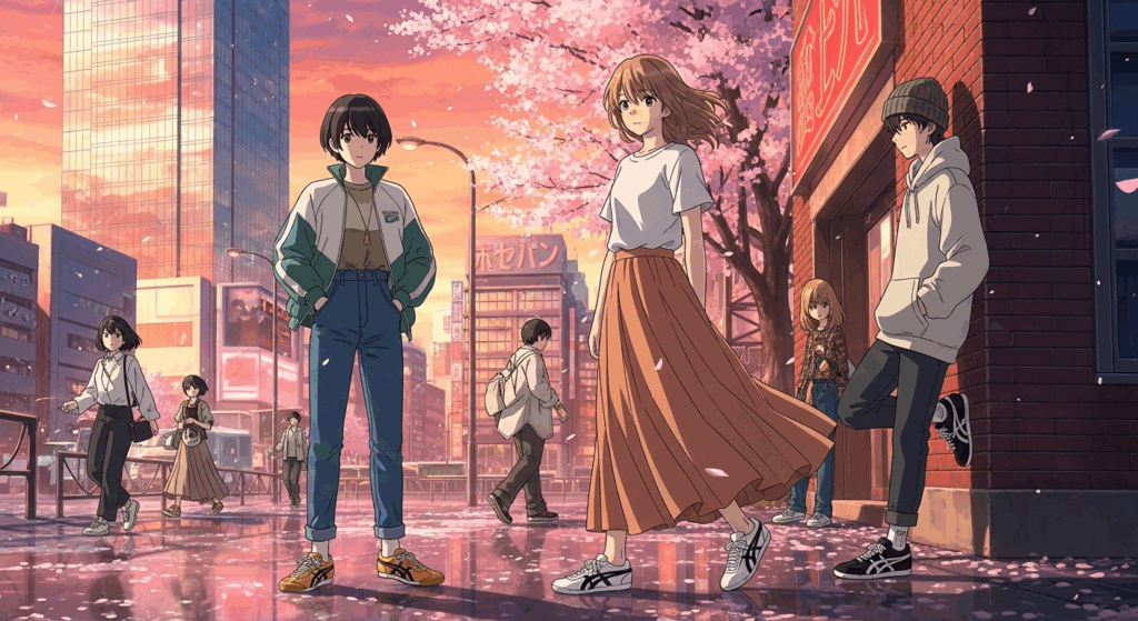 - 女性の場合: ロングスカートやワンピースに、足元だけオニツカタイガーでカジュアルダウンさせるコーディネート。