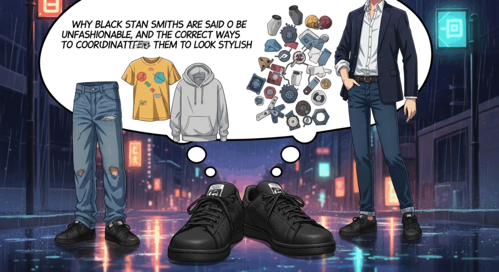 スタンスミスの黒がダサいと言われるのは、重たい印象やコーデの難しさが主な理由です。